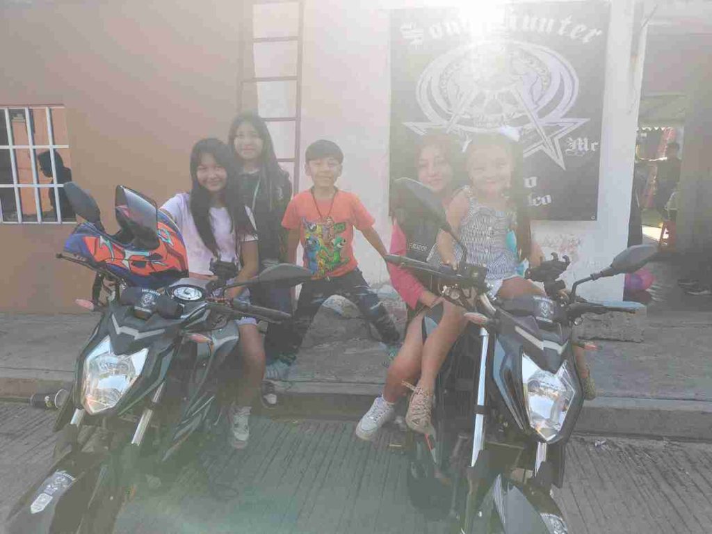 A eso del mediodía, ya se divisaban las primeras señales del pueblo, y al llegar, los pequeños de la comunidad estaban listos con los brazos abiertos, ansiosos por recibir a sus amigos motociclistas.