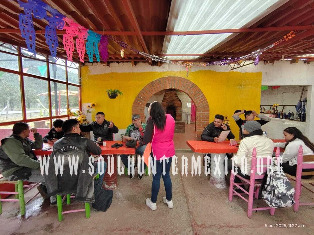Al llegar al destino final, nos rodeó el silencio del bosque… roto rápidamente por nuestras voces, nuestros tragos bien merecidos y esa hermandad que solo Soul Hunter México sabe construir. Risas, anécdotas, tonterías inolvidables… todo quedó grabado en ese instante.